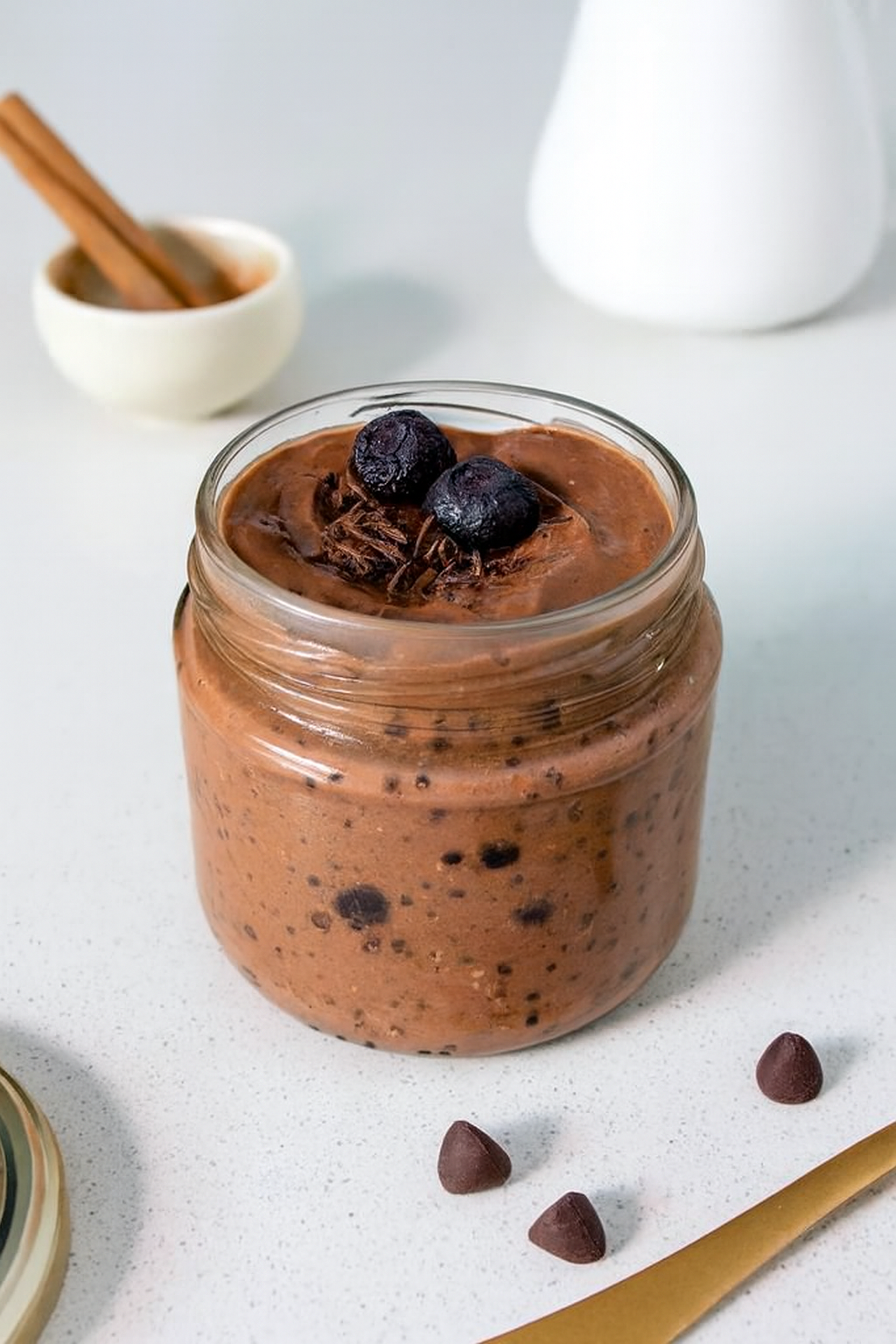 Chocolate Overnight Oats with Chocolate Chips – Rolled Oats, Cocoa Powder, Dark Chocolate Chips, Dry Blueberries, Mixed nut (Macadamia, Pecan, Almond, Hazel) Pumpkin Seeds.🍓🍯Caramel Berry Overnight Oat – Rolled oats, Caramel protein powder, Berry powder (strawberry, blueberry, raspberry), Chia seeds, Ground flaxseed, Coconut powder. Nutrition Info without the milk add on: Calories 500| Protein 24g| Carbs 55g| Fat 17g| Fiber 7g